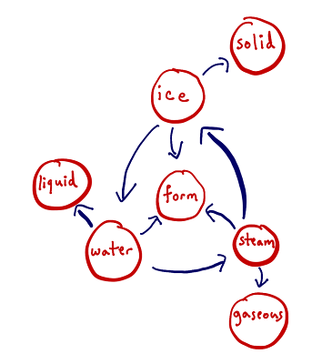 “શબ્દકોશને અનુસરતા આલેખનો એક ભાગ – ‘બરફ’, ‘વરાળ’ અને ‘પાણી’ મળીને જે વર્તુળ પુરૂં થાય છે તે ખાસ જોશો.