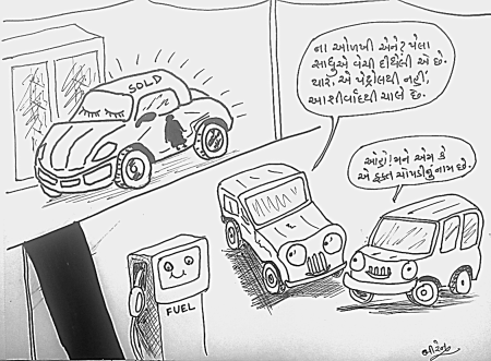 ગણિતમાં ગરબડ ઘણી, ભાષા મત ખંખોળ, ભૂગોળમાં ફરતું દીસે, જગ આખુંએ ગોળ, યુદ્ધ ઘણાં ઇતિહાસમાં, મનમાં કાગારોળ, હીંડે ક્યમ ભણતર તણું ગાડું ડામાડોળ.