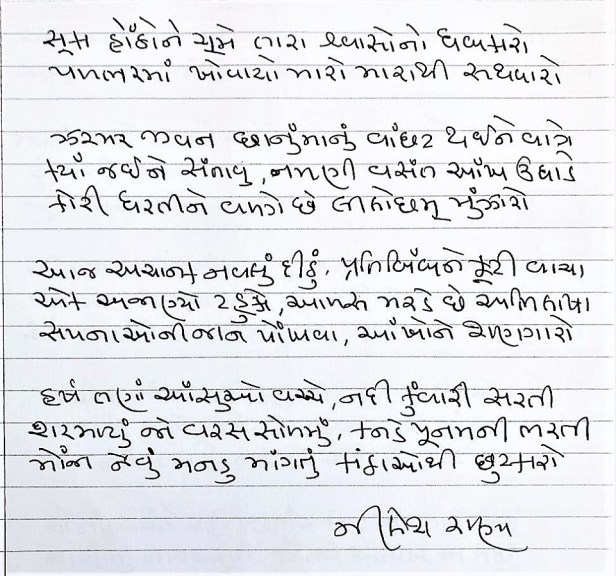 પદ્ય સાહિત્ય શ્વાસોનો ધબકારો Date: December 11, 2022Author: webgurjari 0 Comments ડો. નીલેશ રાણા Share this: Share on X (Opens in new window) X Share on Facebook (Opens in new window) Facebook Like Loading... Related