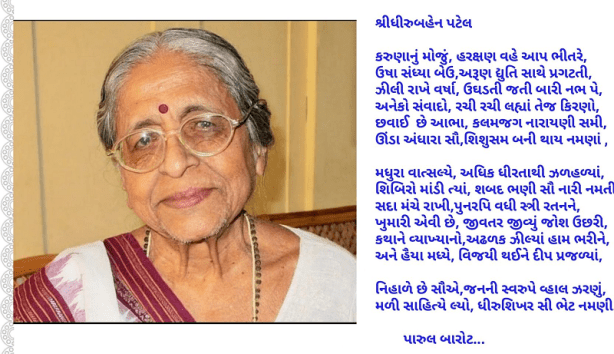 પદ્ય સાહિત્ય, પરિચયો સ્વ. ધીરુબહેન પટેલ Date: March 15, 2023Author: webgurjari 0 Comments પારુલ બારોટ Share this: Share on X (Opens in new window) X Share on Facebook (Opens in new window) Facebook Like Loading... Related