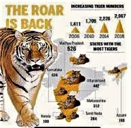 વાઘની વસતિ બાબતે જોવા મળ્યું છે એમ દેશના કેટલાક વિસ્તારોમાં તેની સંખ્યા અપ્રમાણસર રીતે વધી છે. જ્યારે અમુક ભૂતકાળનાં એવાં સ્થળોએથી વાઘ કાં સાવ લુપ્ત થઈ ગયા છે યા ઘટી ગયા છે. ‘પ્રોજેક્ટ ટાઈગર’ના આરંભ વખતે 1973માં દેશમાં વાઘ માટે ફક્ત નવ આરક્ષિત વિસ્તાર હતા, જે પચાસ વર્ષમાં વધીને 53 થયા છે. અલબત્ત, એમાંના પંદર આરક્ષિત વિસ્તાર કાં લુપ્ત થઈ ગયા છે કે વાઘ માટે કામના રહ્યા નથી.
