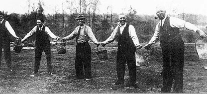 જો દરેક વ્યક્તિને તેની પહેલાંની વ્યક્તિ ભરેલી ડોલ સોંપતી હોય તો સૌ પહેલી ઊભેલી વ્યક્તિ પાસેથી ભરેલી ડોલ ક્યાંથી આવી ?