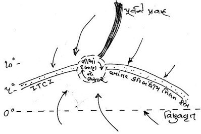 આપણે જાણીએ છીએ કે ચોમાસામાં ભારતની ધરતી તરફ સમુદ્ર પરથી પવનો વાય છે. પરંતુ જયારે ચોમાસું નથી હોતું ત્યારે વિષુવવૃત્તની નજીક ઉત્તર ગોળાર્ધ અને દક્ષિણ ગોળાર્ધ, એમ બંને તરફથી પવનો સામસામા મળતા હોય છે. ( જુઓ ચિત્ર ૨).