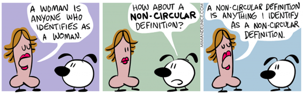 પોતાની જ વ્યાખ્યામાં વાપરવા પડે એવા શબ્દો સભાનપણે ન વાપરીએ તો પણ એવી કેટલીય પરિભાષાઓ છે જેમાં એકબીજા પર આધાર રાખતા જ હોય એવા શબ્દો ટપકી જ પડે એવું બહુ બને છે. જેમકે, તેમનાં સ્વાભાવિક અસ્તિત્વના ક્રમમાં આ પરિભાષા જુઓ: