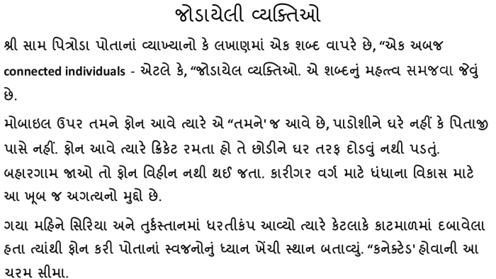 મહાનગરોમાં ફોનની અગત્યના કારણે કેમ સામાજિક ઢાંચાએ મારગ કાઢી લીધો હતો તે આપણે જોયું. ફોન કરનાર અને મેળવનાર એ બંને મુશ્કેલી વેઠી લેતા. એક અંગત ઉદાહરણ લઈએ. આ લેખક મુંબઈ આવ્યો ત્યારે નજીકના સંબંધીઓમાંથી એક-બેને ઘરે જ ફોન હતા. બાકીનાને જરૂર પડે તો પાડોશીને ત્યાંથી કે દુકાનમાંથી ફોન કરે. આ તરફ ઓફિસમાં એક એક્સ્ટેન્શન નંબર ઉપર ૫-૬ જણા એટલે ક્યારેક ફોન કરનારને “એન્ગેજ’ મળે. એટલે પાડોશીના ઘરમાં નીચા મોઢે દશેક મિનિટ બેસી રહેવું પડે-વારંવાર પ્રયત્ન કરવા! ને પછી ખબર પડે કે આપણે જગ્યા ઉપર નથી તો શું કરવું? ક્યારેક સંદેશો મૂકી દે તો ક્યારેક બીજી વાર બીજા પાડોશીને ત્યાંથી પ્રયત્ન કરે. આવી જ પરિસ્થિતિ આપણે એમનો સંપર્ક કરવામાં. પાડોશીને ત્યાં સમય જોઈને જ ફોન થાય.