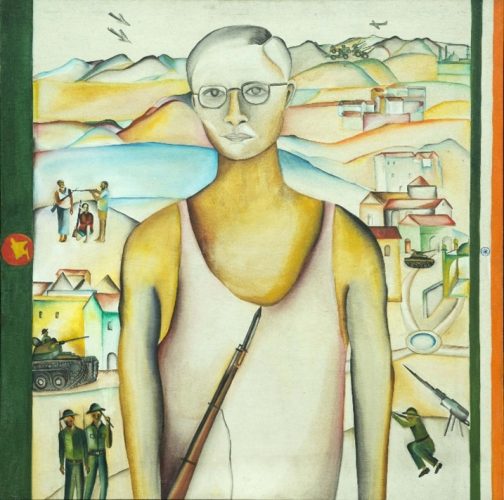 ‘સૈનિક’ શબ્દ કાને પડતાં જ આપણી નજર સમક્ષ ચુસ્ત, ગણવેશમાં સજ્જ, હાથમાં હથિયાર લઈને ટટ્ટાર ઊભેલા માણસની આકૃતિ ખડી થઈ જાય. સ્ફૂર્તિ, સજ્જતા અને શિસ્તની તે પ્રતિકૃતિ હોય. આની સરખામણીએ ભૂપેન ખખ્ખરે દોરેલું બંદૂક સાથેનો મુક્તિવાહિની સૈનિક/Muktibahini Soldier with a gun શિર્ષકવાળું ચિત્ર સાવ વિરોધાભાસી જણાય.