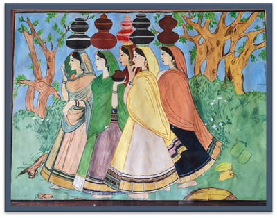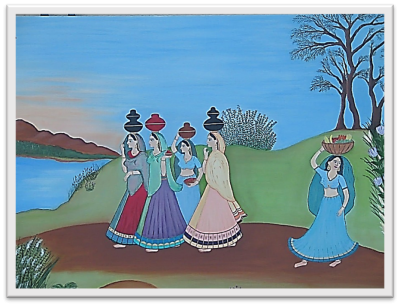 Panihari. watercolor 1956. DKPહાઈસ્કૂલ સમયના થોડા ચિત્રો જ જળવાઈ રહ્યા છે. બાકી બીજા ઘણા ક્યાં હશે…તેનો તાગ લગાવવો મુશ્કેલ છે. વર્ષોના અંતરાય પછી…1998 to now. Paintings in Oil color.