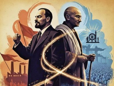 લશ્કરવાદ અને સામ્રાજ્યવાદ એ બે મૂડીવાદનાં જોડિયાં સંતાન છે. બલકે, ત્રણે અવિભાજ્યપણે સંપૃક્ત છે. (લેનિન કૃત ‘ઈમ્પિરિયાલિઝમ ઈઝ ધ હાઈએસ્ટ સ્ટેજ ઓફ કેપિટલિઝમ’[1] સાંભરે છે?) ૧૯૨૮ના નવેમ્બરમાં ‘યંગ ઈન્ડિયા’ની એક ટિપ્પણીમાં તેમજ લગભગ એ જ અરસામાં ગૂજરાત વિદ્યાપીઠ ખાતે બોલતાં ગાંધીજીએ લેનિન અને એમના બોલ્શેવિક સાથીઓના સંઘર્ષ ને સમર્પણનો આદરપૂર્વક ઉલ્લેખ કર્યો હતો-
