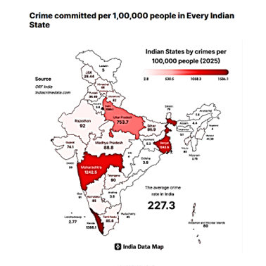 દેશની એક લાખની વસ્તીએ ચોરીના બનાવોની રાષ્ટ્રીય સરેરાશ ૪૯.૫ છે. સૌથી વધુ અરુણાચલમાં ૯૪.૧ છે. ગુજરાતમાં ૨૬.૯ની સરેરાશ રાષ્ટ્રીય સરેરાશ કરતાં ઓછી છે પરંતુ ઉત્તરપ્રદેશની સરેરાશ ૧૮.૬ થી વધુ છે. ચોરીના બનાવોમાં વધારો થયો છે પણ ચોરાયેલો માલ પરત મેળવવામાં ઘટાડો જોવા મળ્યો છે. આખા દેશમાં ચોરીનો વસૂલાત કે પરત સંપત્તિનો દર ૨૦૨૧માં ૩૦.૨ ટકા હતો, ૨૦૨૨માં ૩૬ ટકા અને ૨૦૨૩માં ૨૯.૯ ટકા હતો.
