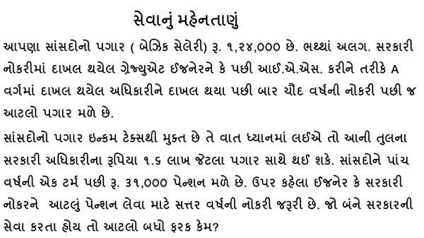 પગાર અને ભથ્થા ઉપરાંત બીજી સગવડો એટલી બધી છે કે આમાંથી નિહિત સ્વાર્થ ઉભો થાય છે. વિશેષાધિકારો આદત બની જાય છે અને તેને ન છોડવા માટે જે કરવું પડે તે નેતાઓ કરે છે, જેમ કે જો અમુક પક્ષ ની ટિકિટ ન મળે તો પક્ષ જ છોડી દે છે. પોતાને ન મળે તો પુત્ર-પુત્રીઓ માટે ટિકિટ મેળવવા માટે સોદા થાય છે. આને કારણે વિચારધારા જેવું કોઈ વળગણ હવે રહ્યું નથી. એ જમાનામાં આયારામ-ગયારામ પ્રખ્યાત થયા હતા,પણ . હવે તો ધુરંધરો ય આશ્ચર્ય પમાડે તે રીતે તદ્દન વિરુદ્ધ ની વિચારધારાની ટ્રેનમાં ચડી જાય છે. સુજ્ઞ વાંચકોને આવાં ઉદાહરણો પોતાની આસપાસ મળી રહેશે. જો વિચારધારા અગત્યની ન હોય તો મૂલ્યનિષ્ઠા પ્ણ ન જ હોય; આથી ભ્રષ્ટાચારનો પણ છોછ નથી રહ્યો. છૂટોછવાયો ભ્રષ્ટાચાર કદાચ સીત્તેર વર્ષ પહેલાં પણ હશે પરંતુ એ ત્યારે શરમની વાત હતી. આજે ન નેતા, ન પ્રજા, ભ્રષ્ટાચારની વાતથી ચોંકે છે.