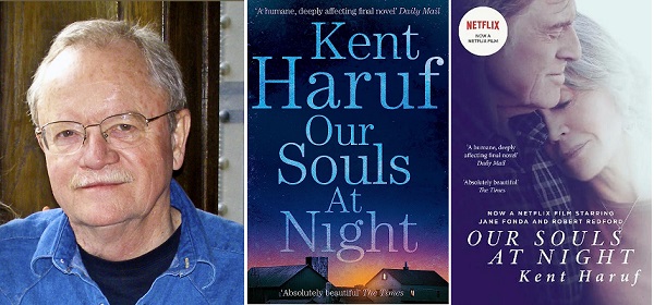 અમેરિકન લેખક કેંટ હારુફ ૨૦૧૪માં ૭૧ વર્ષની વયે અવસાન પામ્યા. મૃત્યુના થોડાક દિવસ પહેલાં જ એમણે પોતાના છઠ્ઠી અને અંતિમ નવલકથાનું આખરી પ્રકરણ પૂરું કર્યું. એ નવલકથા એટલે OUR SOULS AT NIGHT એટલે કે ‘ આપણા આત્માઓ અધરાતે ‘ .એમણે લખેલી છએ નવલનું કથાવસ્તુ માનવીય સંબંધો અને એને નિભાવવામાંથી સર્જાતી વિડંબનાઓ છે. બધી જ કથાઓ અમેરિકાના કાલ્પનિક નગર હોલ્ટમાં આકાર લે છે. આ સર્વેમાં આશરે બસો પાનાંની આ OUR SOULS AT NIGHT જુદી જ ભાત પાડતી અને અનોખા કથાવસ્તુવાળી નવલકથા છે. એ નવલકથાના પ્રારંભ વખતે જ તેઓ ટર્મીનલ કેંસરથી પીડાતા હતા અને એમને એ જાણ હતી. પુસ્તકનું કથાવસ્તુ સંક્ષેપમાં.