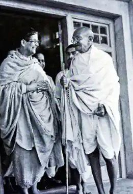 ૧૯૪૦માં કોલકાતામાં શાંતિનિકેતનની મુલાકાત દરમ્યાન વાતચીત કરતા મહાત્મા ગાંધી અને પંડિત ક્ષિતિમોહન સેન પ્રકાશ ન. શાહ