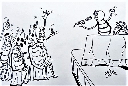 (આગળ ખુરશીમાં બેઠેલી ઊધઈ): “આને પોપ્યુલર સ્પીકર બનવાના બહુ ધખારા છે, એટલે બક્ષીજીની નબળી નકલ કરે છે.”