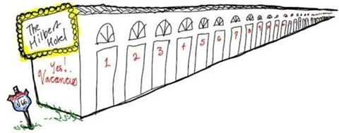 બીજું એક બહુ જાણીતું ઉદાહરણ હિલ્બર્ટની ભવ્ય હૉટલના વિરોધાભાસનું છે.
