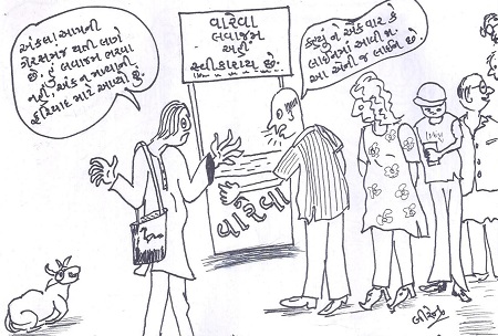 આ સામયિકના બે અંક પ્રકાશિત થયા ત્યાં સુધી તેના વિતરણની વ્યવસ્થા સુચારુ રીતે ગોઠવાઈ નહી હોવાથી અનેક વાચકોની ફરિયાદ અંક ન મળ્યાની રહેતી. આ મુદ્દાને સમાવીને નીચેનું કાર્ટૂન બનાવ્યું હતું.