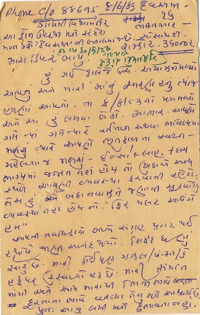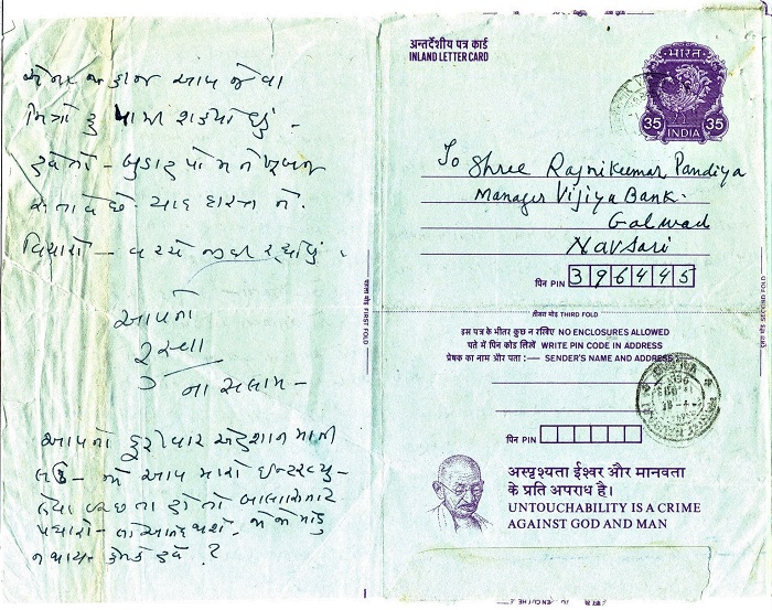 એ પછી પણ એમણે અનેક ગામો બદલ્યાં. સુરત પાસે ખોલવડ ગામે રહ્યા ત્યારે પણ મારી સાથે પત્રવ્યવહાર જારી રહ્યો, ને પછી સુરત પાસેનું કઠોર ગામ.