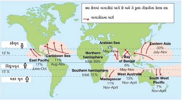 સામાન્ય રીતે અરબી સમુદ્ર કરતાં બંગાળના ઉપસાગરમાં વધારે સંખ્યામાં વાવાઝોડાં બને છે. વર્ષ ૧૮૯૧થી ૧૯૯૦નાં એકસો વર્ષમાં પૂર્વ ભાગમાં ૨૬૨ વાવાઝોડાં ઉઠયાં હતાં જ્યારે પશ્ચિમમાં (એટલે અરબી સમુદ્રમાં) માત્ર ૩૩ એટલે કે બેત્રણ વરસે એક. પરંતુ તે પછી પરિસ્થિતિ બદલાઈ છે. સરેરાશ વરસે એક વાવાઝોડું અરબી સમુદ્રમાં પણ આવવા લાગ્યું છે. બીજી વિશેષતા છે કે માત્ર મે અને ઓક્ટોબર/નવેમ્બરને બદલે વાવાઝોડાં ચોમાસાની વચ્ચે પણ આવવા લાગ્યાં છે. ૨૦૧૯માં કુલ ૧૧ તોફાન ઉઠયાં, જેમાંથી ૪ અરબ સાગરમાં હતાં અને ૭ બંગાળના ઉપસાગરમાં. આ સંખ્યા વધતી જ રહેવાની.