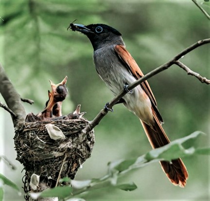 [દૂધરાજની માદા તેના બચ્ચા માટે ઊડતા કીટક મારી લઈ આવે છે]મુખ્યત્વે ઉડતા જંતુઓનો ખોરાક લઈને, ઇન્ડિયન પેરેડાઇઝ ફ્લાયકેચર જંતુઓની વસ્તીને નિયંત્રિત કરવામાં મદદ કરે છે, કુદરતી અને ખેતીલાયક લેન્ડસ્કેપ્સ બંનેમાં સંતુલન જાળવી રાખે છે. બગીચાઓ, અને જંગલમાં તેમની હાજરી ફક્ત દેખીતી સુંદરતા કરતાં વધુ છે – તે એક સ્વસ્થ, કાર્યરત ઇકોસિસ્ટમનો સંકેત છે.