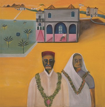 ભૂપેન ખખ્ખરની ચિત્રસૃષ્ટિ : યાત્રાએ જઈ રહેલાં માતાપિતાનું પોર્ટ્રેટ