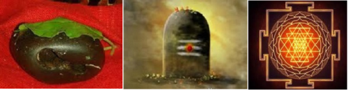 આગમ શાસ્ત્રમાં ઈશ્વરને જીવેતર ચિહ્ન રૂપે (aniconic) – વિષ્ણુને શાલિગ્રામ રૂપે. શિવને લિંગ રૂપે અને શક્તિ (માતાજી)ને શ્રીયંત્ર રૂપે – પૂજવામાં આવે છે.