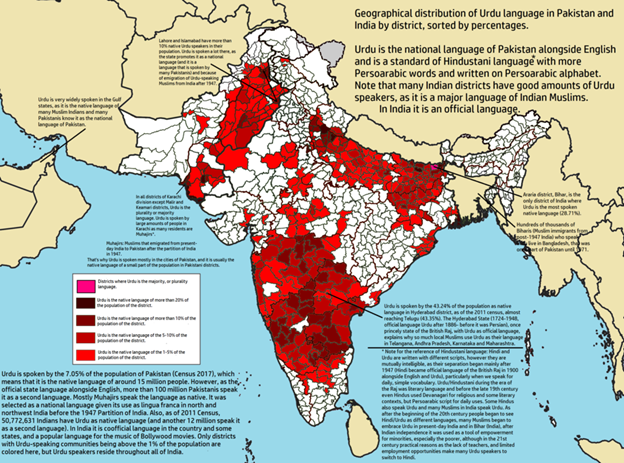 આજે ઉર્દૂને સંકીર્ણ દ્રષ્ટિએ કે તેને ભારતીય ભાષાને બદલે મુસલમાનોની ભાષા તરીકે જોવામાં આવે છે. તેના મૂળમાં ભારતના કોમી ધોરણે થયેલા ભાગલા અને પાકિસ્તાને ઉર્દૂને કૌમી જબાન(રાષ્ટ્રભાષા) બનાવી તે છે. પાકિસ્તાનની જેમ તેની રાષ્ટ્રભાષાને પણ ભારતીયોનો એક વર્ગ દુશ્મન કે પરાયાની નજરે જુએ છે. ઉર્દૂ ભારતમાં જ જન્મી છે અને પાંગરી છે તે હકીકત ભૂલાવી દેવાય છે. સાહિત્ય, સંસ્ક્રુતિ અને કલાના શક્તિશાળી માધ્યમના રૂપમાં વિકસિત થયેલી ઉર્દૂ મિશ્રિત વારસો ધરાવતી ભાષા છે. સુપ્રીમ કોર્ટે કહ્યું છે તેમ ભાષાને કોઈ ધર્મ નથી તે એક સમુદાય, પ્રદેશ અને લોકોની ભાષા છે અને પરસ્પરના આદાન-પ્રદાનનું માધ્યમ છે. ભાષા સંબંધી સંકીર્ણ અને સાંપ્રદાયિક વિવાદોમાં લોકોની સંવેદનાઓ, જૂની માન્યતાઓ અને રાજનીતિની ભૂમિકા રહેલી છે.