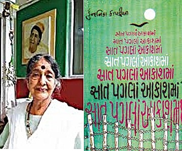 દિલ્હી સાહિત્ય અકાદમી દ્વારા પુરસ્કૃત દીર્ઘનવલ ‘સાત પગલાં આકાશમાં’ બહુચર્ચિત થઇ છે. સમાજમાં વિવિધ પ્રકારે થતા સ્ત્રીના શોષણની વાત અહીં આલેખાઈ છે. ‘સાત પગલા આકાશમાં’ – લેખિકા ‘આદર્શ’ નહીં પરંતુ ‘સાચી’ સ્ત્રીનું ચિત્ર રજૂ કરે છે. સ્ત્રી અબળા નહીં પણ ‘અતિબળા’ એવી નારીશક્તિ છે. અહી મુખ્યત્વે વસુધાના પાત્ર દ્વારા સ્ત્રીનું અસ્તિત્વ અને તેની અસ્મિતા વચ્ચેના સંઘર્ષની કથા અહીં આલેખાયેલી છે. અંગ્રેજી ભાષાના જાણીતા નારીવાદી લેખિકા શશી દેશપાંડે પણ સ્ત્રીઓ ગૃહિણી તરીકે વૈતરું કરી પોતાની ઓળખ, સંવેદનશીલતા અને સર્જકતા ગુમાવી બેસે છે એનું ચિત્ર આલેખતા કહે છે કે ‘She has lost her name. She is known as somebody’s wife, somebody’s sister, somebody’s mother or daughter. Who is this ‘sombody’ ? નારીવાદના પ્રથમ પગરવ સમા ઇબ્સનના ‘ઢીંગલી ઘર’ નાટકમાં આપણને ગૃહત્યાગ માટે ઉંબર બહાર ડગ મૂકવા જતી નોરાના મુખે નારીવાદી સૂર સંભળાય છે. તેમ કુન્દનિકાજી પણ અણીદાર પ્રશ્ન પૂછી બેસે છે કે…