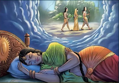 આખીયે અયોધ્યાને રામ પધારે તેની ખુશી હતી. એક માત્ર ઉર્મિલાની ખુશી સાથે લક્ષ્મણમિલનની ઝંખના ભળેલી હતી. થોડી જ પળોમાં લક્ષ્મણ મળશે એ ખુશીમાં ૧૪ વર્ષની પ્રતિક્ષાની પીડા ઓગળી જવાની હતી. વનવાસમાંથી પરત આવ્યા બાદ રામનો રાજ્યાભિષેક થઇ રહ્યો હતો. ત્યારે લક્ષ્મણ સૌના આશ્ચર્ય વચ્ચે અચાનક ખડખડાટ હસવા લાગ્યો. સૌને આ વિચિત્ર લાગ્યું. કારણ પૂછતા લક્ષ્મણે કહ્યું કે ‘હું ૧૪ વર્ષથી જેની રાહ જોઉં છું એ રામના રાજ્યાભિષેકની ઘટના જ્યારે આજે સામે છે ત્યારે જ નીદ્રાદેવી મને તેણે આપેલા કરારની યાદી આપે કે હું ઉર્મિલાને જાગૃત થવા દઉં અને સૂઈ જાઉં.’