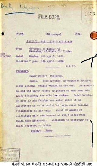 મુંબઈના ગવર્નરે લંડનમાં ગૃહ પ્રધાનને એ જ દિવસે કરેલા તારમાં આની વધારે વિગતો આપી તે પ્રમાણે ગાંધીજીના સાથીઓ પાંચ-છની ટુકડીઓ બનાવીને સમુદ્રનું પાણી મોટા અગરમાં ઉકાળવા માટે લઈ આવ્યા. ગવર્નર કહે છે કે દાંડીથી ત્રણ માઇલ દૂર આટ ગામેથી ૧૫ મણ ગેરકાનૂની મીઠું પણ જપ્ત કરવામાં આવ્યું. (એક મણ = ૪૦ શેર = લગભગ ૩૬ કિલો).