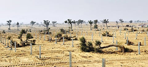 In Bikaner district’s Bhanipura village, farmers estimate that 10,000 khejri trees have been cut since 2024 for a solar plant(Photographs: Aziz Bhutta)